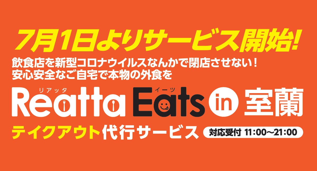 コロナ禍に直面する飲食店売り上げ減少対策 テイクアウト代行サービスReatta Eats(リアッタイーツ)が 『室蘭・登別』エリアにサービス拡大 – プレスリリース